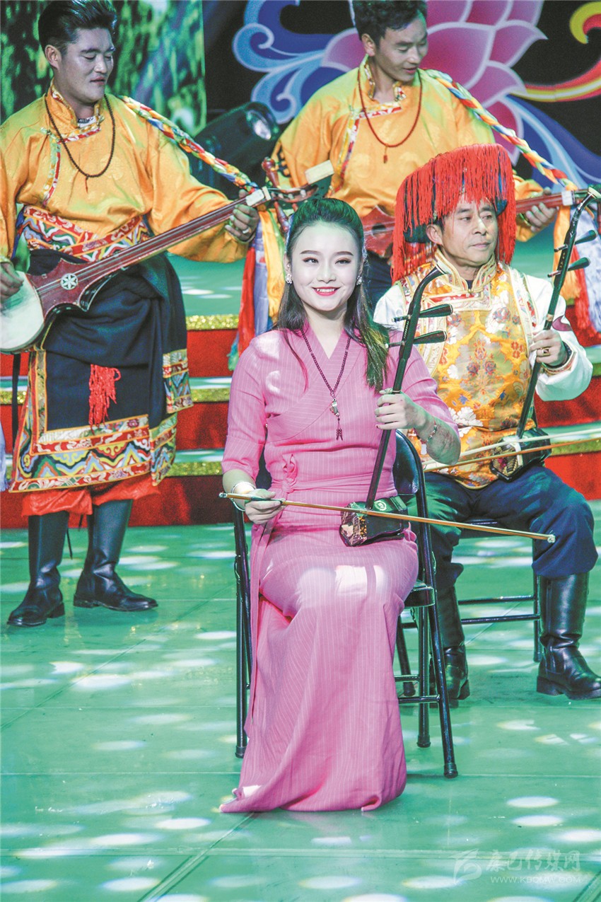 歌曲聯唱《百花爭艷》,是演出中第一個讓觀眾們大呼過癮的節(jié)目,年僅5歲的澤仁拉姆用一首藏族原生態(tài)歌曲《故鄉(xiāng)》,讓全場觀眾耳目一新。緊隨而來的藏族山歌《家鄉(xiāng)美》、漢族歌曲《和諧大家園》、回族歌曲《花兒與少年》、彝族歌曲《 尼雨尼杰》將音樂的魅力逐級顯現,最后在經典歌曲《愛我中華》中急速升華。6首歌曲風格各異,卻又一氣呵成,不僅集中展示了我州藏、漢、回、彝四個民族的藝術風采,還生動展現了我州各族人民其樂融融、團結進步的和諧面貌。
