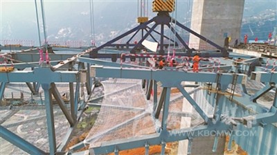 針對這一難題,建設(shè)中創(chuàng)新纜索吊裝系統(tǒng)設(shè)計:一是優(yōu)化吊裝使用的支索器,增加主纜抗風穩(wěn)定性,使牽引繩不致纏繞;二是找準風場規(guī)律,確定有效施工時間為早上6點至7點開始起吊,12點之前完成全部吊裝作業(yè);三是制定和完善吊裝作業(yè)的管理體制體系,增設(shè)視頻和音頻監(jiān)控系統(tǒng),提升作業(yè)規(guī)范性。通過上述措施有效的保障了鋼桁梁吊裝的順利完成。從2017年9月26日開始吊裝鋼桁梁,到2018年2月6日勝利合龍,共歷時133天。