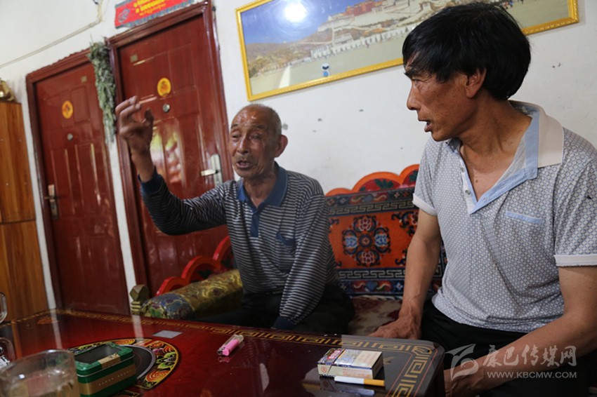楊高清老人(左)在講述當(dāng)年的情景。