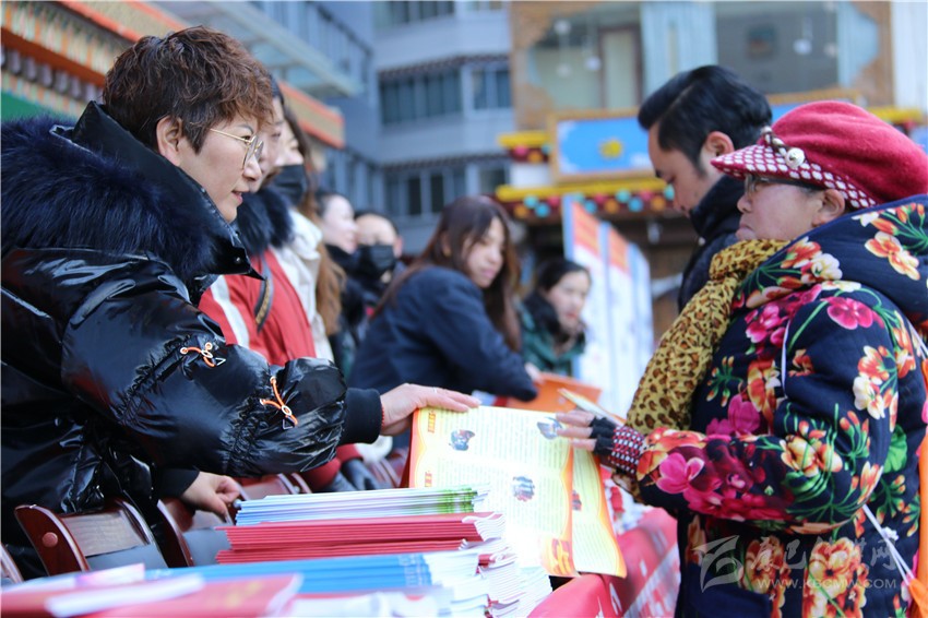 活動(dòng)現(xiàn)場(chǎng),工作人員為市民發(fā)放民族團(tuán)結(jié)進(jìn)步宣傳品、民族團(tuán)結(jié)進(jìn)步藏漢雙語(yǔ)宣傳教育讀本、宣傳畫、宣傳折頁(yè)、宣傳掛歷、《中國(guó)民族報(bào)》甘孜州民族團(tuán)結(jié)專刊、《民族》雜志甘孜州民族團(tuán)結(jié)??雀黝愋麄髻Y料9800余份(本),擺放展板30個(gè)。來(lái)自丹巴縣的仁真說(shuō):”現(xiàn)在的幸福生活離不開偉大的中國(guó)共產(chǎn)黨的領(lǐng)導(dǎo),也離不開全國(guó)各族人民共同團(tuán)結(jié)奮斗、共同繁榮發(fā)展?!?/p>