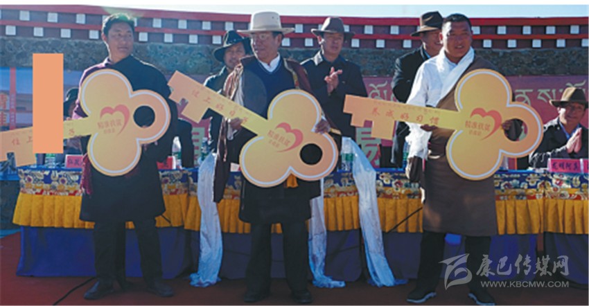 甘孜縣易地搬遷戶領到新房鑰匙。