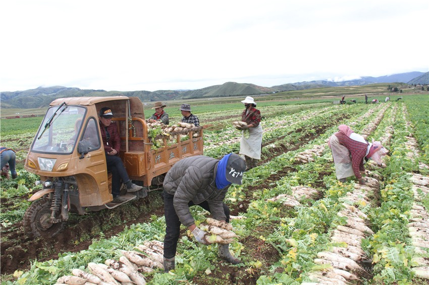 理塘縣蘿卜銷往粵港澳,深受當?shù)厥忻駳g迎。