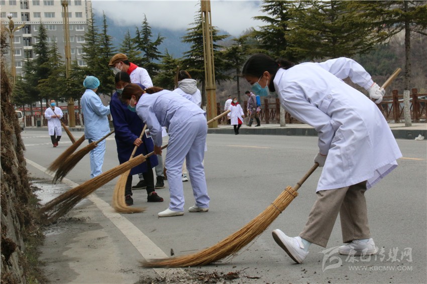 當(dāng)日早上,當(dāng)記者乘車駛?cè)肟刀ㄐ鲁菚r,一群“白衣天使”已在路口兩旁,拿著掃帚、簸箕,背著消毒液熱火朝天地開展“周末衛(wèi)生大掃除”活動?!半m然今天是周末,但是為了充分發(fā)揮愛國衛(wèi)生運(yùn)動的統(tǒng)籌協(xié)調(diào)作用和群眾廣泛參與的優(yōu)勢,以環(huán)境衛(wèi)生整治、糞便污水垃圾處理和消除鼠、蟑、蚊、蠅等病媒生物孳生環(huán)境為重點(diǎn),我們從新城入口開始到華西甘孜醫(yī)院二院一路打掃下來,看到煥然一新的街道很有成就感,作為一名醫(yī)護(hù)人員參與這樣的活動感覺非常有意義?!比A西甘孜醫(yī)院的醫(yī)護(hù)人員易璽拉姆告訴記者。
