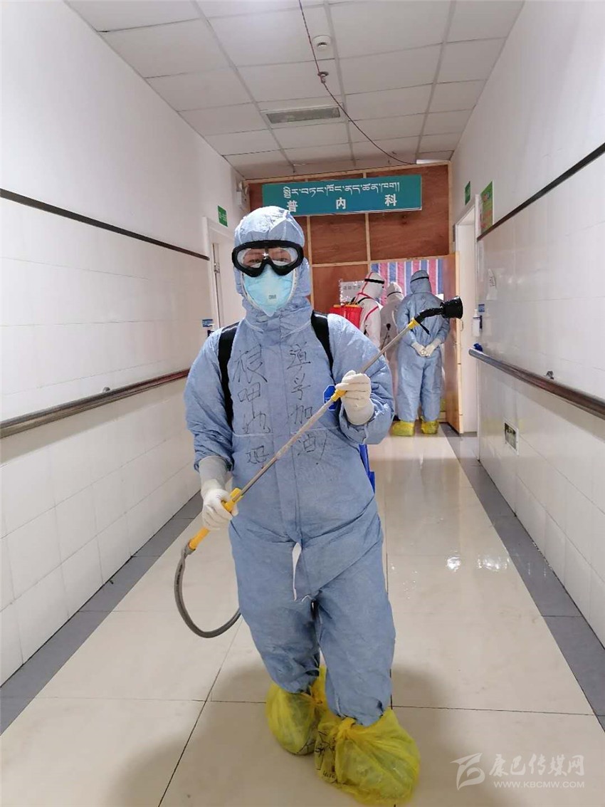 除了日常護理,根呷她姆的還要負責每日病房的消毒工作、垃圾清理以及清潔衛(wèi)生工作。“消毒工作格外重要,必須做到不漏一個死角?!备人窂娙讨?4消毒液刺激引起的嗆咳及生活垃圾引起的惡心發(fā)嘔,一絲不茍,任勞任怨,做好每一天的消殺清潔工作,讓病毒無處遁形。在同事面前她是護士長、家長,在病人面前,她是護士、護工、清潔工、家屬、心理老師……根呷她姆每天在各種角色間轉(zhuǎn)換自如,不怕臟、不怕累、不怕苦,拼盡全力只為打贏這場沒用硝煙的戰(zhàn)爭!