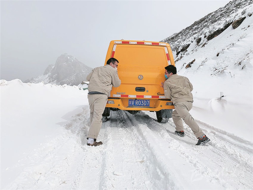 甘孜運檢班冒雪趕赴110kV色達變電站開展搶修工作。