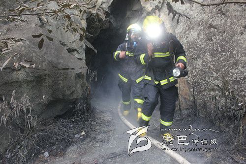 消防官兵在使用有毒氣體探測儀對現(xiàn)場氣體進(jìn)行檢測后發(fā)現(xiàn),雖然煙氣刺鼻,但未檢測出有毒氣體。在使用排煙機(jī)對山洞進(jìn)行持續(xù)排煙后,中隊(duì)派出兩名消防官兵佩戴空氣呼吸器和強(qiáng)光燈在水槍的掩護(hù)下進(jìn)入山洞偵查煙氣源。因山洞內(nèi)煙霧大,溫度高,能見度低,第一批消防官兵未能找到煙氣源。在短暫準(zhǔn)備后,第二批消防官兵攜帶相關(guān)器材進(jìn)入山洞繼續(xù)尋找。在距離山洞口十幾米的地方,消防官兵發(fā)現(xiàn)了大量正在燃燒的電纜線,經(jīng)初步確定,大量白煙就是電纜線燃燒后產(chǎn)生的。因山洞長時(shí)間受高溫烘烤隨時(shí)可能倒塌,消防官兵在與當(dāng)?shù)卣?fù)責(zé)人協(xié)商后對山洞洞口實(shí)施了封閉滅火。