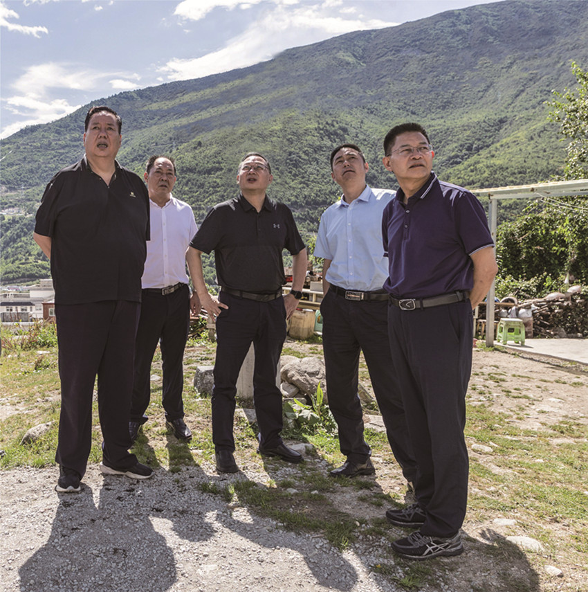 州政協(xié)主席雷建平陪同省政協(xié)副主席劉旭光在康定市駟馬橋黃家溝檢查林長(zhǎng)制工作。