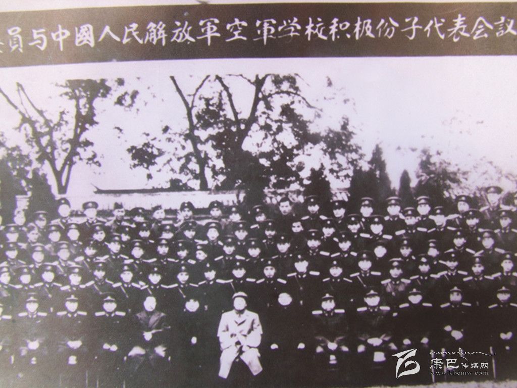 1956年10月28日,是肖金棟永生難以忘懷的日子。作為中國人民解放軍空軍學(xué)校積極分子的一員,肖金棟和全體學(xué)員在北京中南海懷仁堂受到了毛主席、朱德總司令和賀龍?jiān)獛浀挠H切接見并合影。“當(dāng)時(shí),我就站在毛主席身后的第三排,嗯,就是這個(gè),你看像不像?”肖金棟指著拍攝了距今近60年的老照片興奮地對記者說。由于照片年代久遠(yuǎn),已經(jīng)難以辨認(rèn)每個(gè)人的面部表情了,但大致輪廓依然能夠看清楚。