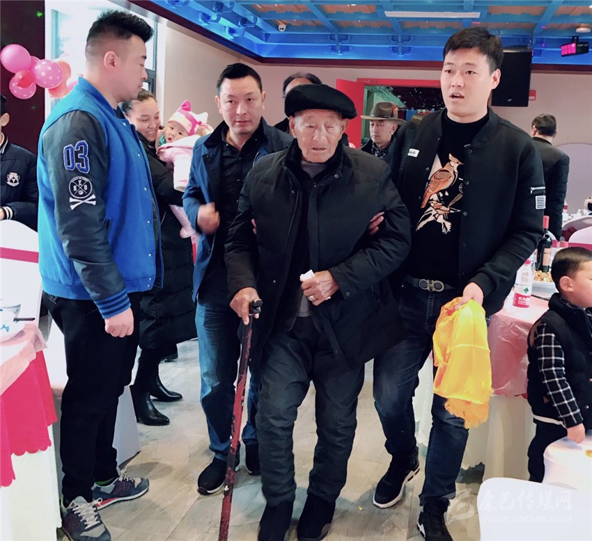 3月5日,在瀘定縣烹壩鄉(xiāng)十里香酒店,按照當?shù)貍鹘y(tǒng),王瑞生的兒孫們提前為他隆重過百歲大壽。雖然已近百歲高齡,但王瑞生精神矍鑠,思路清晰,談吐自如,面色紅潤的他身著簡樸,胸前始終戴著2016年由中共中央、中央軍委頒發(fā)的“中國工農紅軍長征勝利80周年紀念章”,接受親友們的祝福。“祝您健康長壽,開開心心”。親人們不絕于耳的祝福,老人心滿意足,笑容滿面。“好,好,我的家人團圓和睦,家庭幸福,是我最大的心愿?!比缃瘢先艘咽撬氖劳?,家人濟濟一堂,親情流淌,老人幸福開懷。