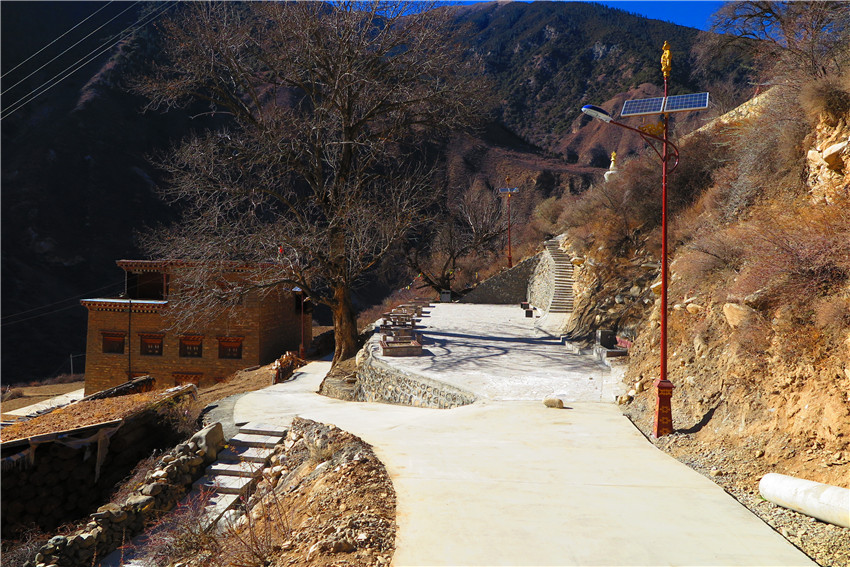 色威鄉(xiāng)谷日村位于縣城以北10公里處,過于由于村集體經(jīng)濟(jì)薄弱弱,村域公共設(shè)施少,村民平時(shí)聚集都是在田間地頭。在宜賓援建下,2017年該村建起了廣場(chǎng)、觀景臺(tái)、太陽能路燈、公廁等設(shè)施。每天傍晚,村民們紛紛走出家門來到廣場(chǎng)跳鍋莊、話家常、散散步,一下讓村莊的“人情風(fēng)味”濃了起來。