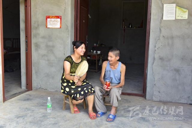 8月15日,南部縣中心鄉(xiāng)漏米巖村周強(qiáng)善新家,周強(qiáng)善與女兒在自家門(mén)前擺龍門(mén)陣。攝影 張可凡