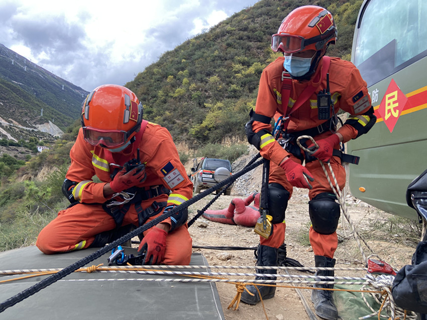 洛絨扎西(右)參加山岳救援訓練。