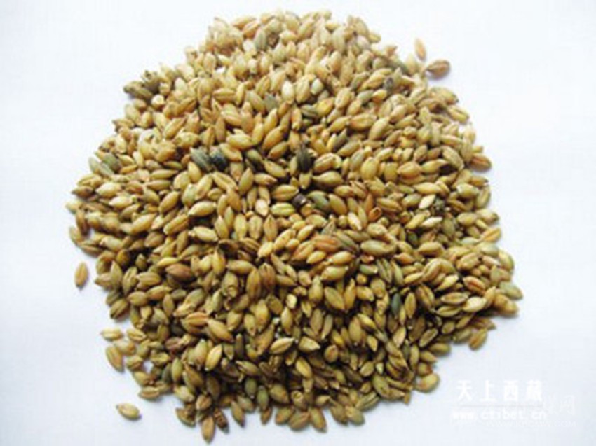 糌粑曾是藏族的主食,形似內(nèi)地的炒面,原料以青棵為主。做法是選好青稞或豌豆、燕麥后淘凈,晾干,炒熟,磨成面粉,磨好后稱為糌粑面,磨得越細(xì)越好。吃糌粑時(shí),根據(jù)各自愛(ài)好,還可以放些奶渣或白糖,然后加酥油茶或清茶,中指按逆時(shí)針?lè)较蚍磸?fù)揉拌均勻,再用手捏成團(tuán)狀,直接用手往口里送。也有用青稞酒調(diào)糌粑的,做出的“粑”甘甜醇香,別有風(fēng)味。