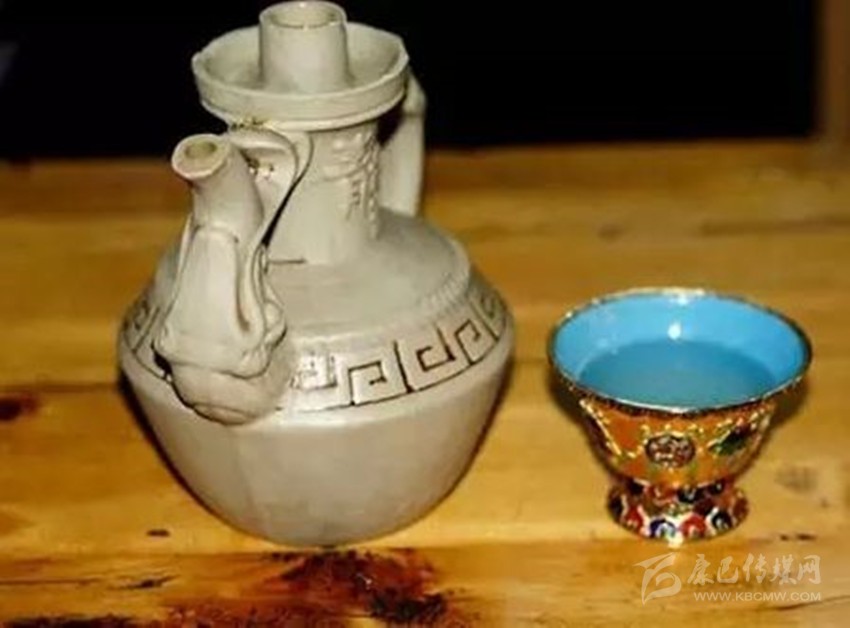 嘉絨語稱“恰鹵”。咂酒是青稞釀制而成的。首先取一定數(shù)量的青稞粒,一般5斤、8斤或10斤,在大鐵鍋中用水煮成八成熟后,放在簸箕里晾開,待冷卻后放上一定比例的酒曲,合勻,又裝入大鐵鍋中發(fā)酵三至四天,待聞到酒香味后,裝入壇中并加水,放置一天以上后,即可取汁食用,這個汁就是咂酒。咂酒味甘甜淳厚,十分爽口,看似不醉人,但有的甘甜之中略帶苦澀,說明酒勁足,不勝酒力者應(yīng)少飲為宜。曾有人寫《飲咂酒詩》說:“成石雜糧一甕收,王侯到此也低頭,五龍抱住撐天柱,咂盡黃河水倒流”。充分展示了咂酒的魅力和飲咂酒的那種愜意。丹巴境內(nèi)巴底、半扇門的上半鄉(xiāng)、太平橋鄉(xiāng)一帶的群眾喜愛煮咂酒,平日,家家都備有咂酒,親朋間禮尚往來、人情世故都送咂酒。喝咂酒是當(dāng)?shù)氐囊淮罅?xí)俗。在節(jié)日或慶典之時,在大壩子中間放一個大的壇子或木桶,里面盛滿含有酒糟的咂酒,然后插入麥稈數(shù)根,眾人圍個大圓圈跳鍋莊,口渴時依次吸之;或一人手持葫蘆,里盛咂酒,在眾人中依次轉(zhuǎn)之;或眾人盤腿圍坐,傳一壺咂酒,稱喝“轉(zhuǎn)轉(zhuǎn)酒”。