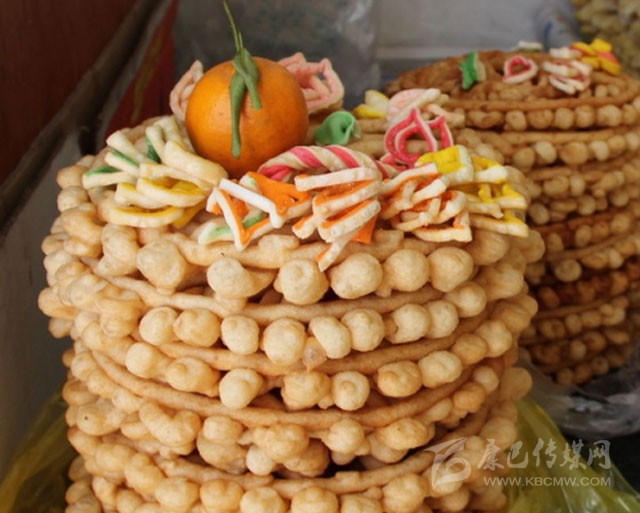 卡賽是藏族人過年必備的美食。用酥油、菜油、豬油等炸成多種面食,類似麻花、油條之類。多在藏歷年時食用。分為耳朵形、蝴蝶形、條形、方形、圓形等各種形狀,涂以顏料,裹以砂糖。既是裝飾神案的藝術(shù)品,又是款待客人的佳肴。“卡賽”的品種花色常常成為女主人勤勞、智慧和熱情的象征,在節(jié)日里分外引人注目。