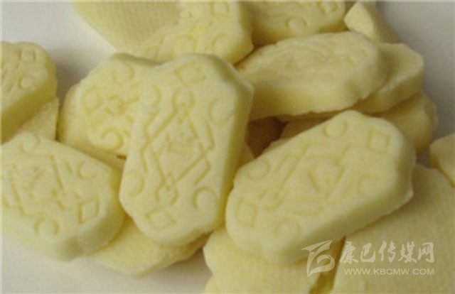 藏族酥酪糕是藏族的著名糕點,在藏族同胞的家里常用作款待客人的美味點心。而且它本身具有很好的保健功效,能夠在品嘗美食的同時又滋補身體。藏族酥酪糕食用起來奶味濃郁,十分受到不同年齡及族群的喜愛,其中還有多種對身體十分有益的材料,例如西藏人參果就是一種純天然無污染的滋補食品。酥酪糕是用提取過奶油后的乳白色淀粉(藏名曲熱)晾干后,用磨磨成粉末,拌入黃油(奶油)、白糖、角麻(人參果)、葡萄干、桃仁等,做成橢圓形、方形,表面有紅絲綠絲擺成圖案,表現(xiàn)吉祥、長壽,放入籠屜內(nèi)蒸熟,賓至可整塊獻(xiàn)上,或切成片狀。據(jù)說它有滋補強身之功效。