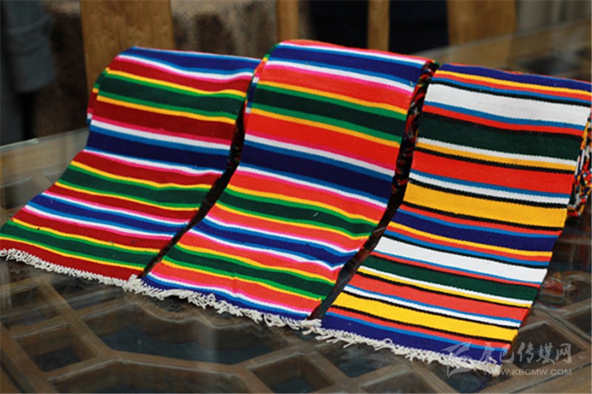 鑲邊時(shí),根據(jù)需要裁為條狀,縫子大襟、下擺的一周。其花型分十樣錦與十字花兩種。十樣錦又叫條花或邦丹,就是用彩色緯紗,織成紅、綠、黃、紫、藍(lán)、白等不同顏色、寬度相等或不等的彩條,每幅圖案用8個(gè)左右顏色排列對(duì)稱(chēng)循環(huán)。十字花又叫擋子花,就是在十樣錦彩條基礎(chǔ)上,于每個(gè)循環(huán)間以5厘米左右的白色或黃色彩條格隔開(kāi),格內(nèi)印以4枚或5枚紅藍(lán)或紅紫色十字做點(diǎn)綴。棉紗氆氌的顏色、規(guī)格及用途同于毛花氆氌,但價(jià)格使宜,適于低擋衣料鑲邊之用。氆氌曾是西藏主要貢品,以扎朗、浪卡子、江孜、芒康等地產(chǎn)的最為著名。